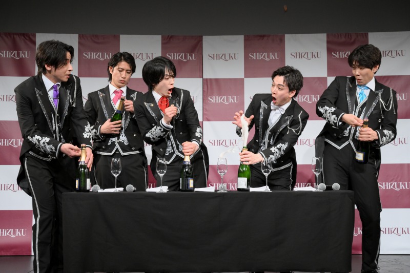その後、ワインの提供を想定し、今日というお披露目の日にふさわしいフレーズを次々と披露していく。中でも真田は、「シャンパーニュの泡のように、僕たちSHiZUKUと弾けていきましょう。しゅわしゅわしゅわ」という独特なセリフとキャラクターで会場を沸かせた。